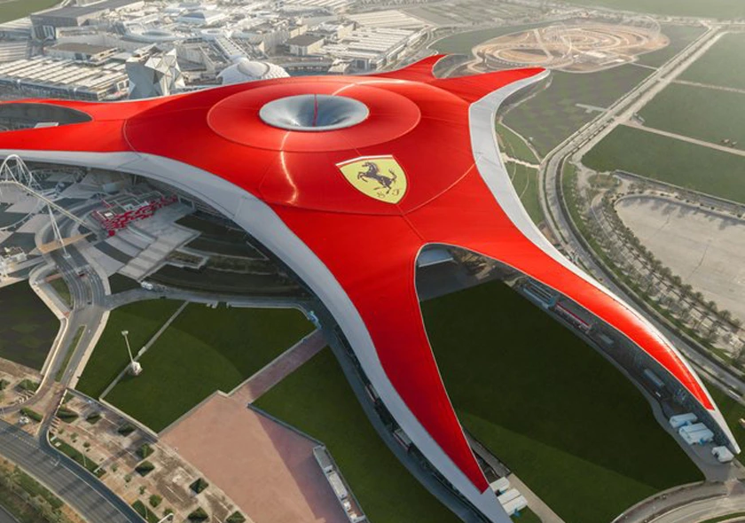 Photo stop outside Ferrari World, home to the world’s first Ferrari-branded theme park.